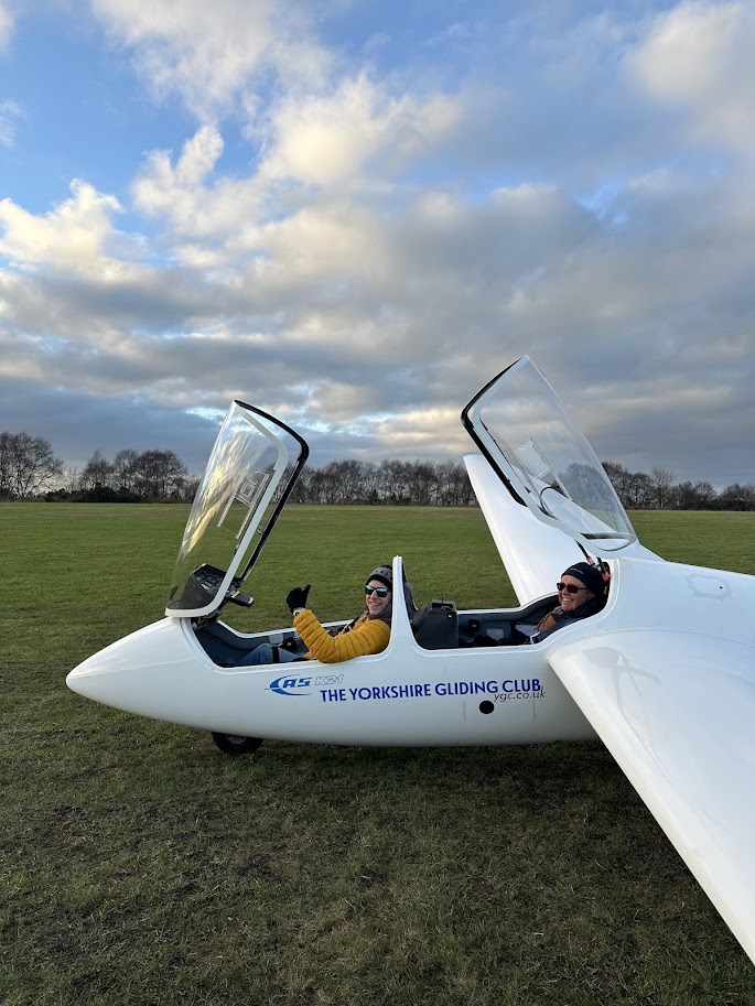 Cambridge is a place fond of traditions and, as a result, we could not help but engage in our annual tradition of gathering some CUGC members and an instructor and shipping them up north for ridge and wave soaring, as well as extensive canopy de-misting. December found a group of us packing our blankets and heaters and heading to the Yorkshire Gliding Club (YGC), aka the Sutton Bank airfield. Sutton Bank is a hill gliding site and one of the oldest UK gliding sites. It offers glider pilots used to the flatness of Cambridgeshire the opportunity to soar along its westerly ridge and potentially find some wave. While there is no water tower or Wimpole Estate to help us navigate, there is the famous Kilburn White Horse -a landmark one cannot possibly miss. Its fleet includes the most wonderful DG1000 (that the author instantly fell in love with), which we had the pleasure to fly.
