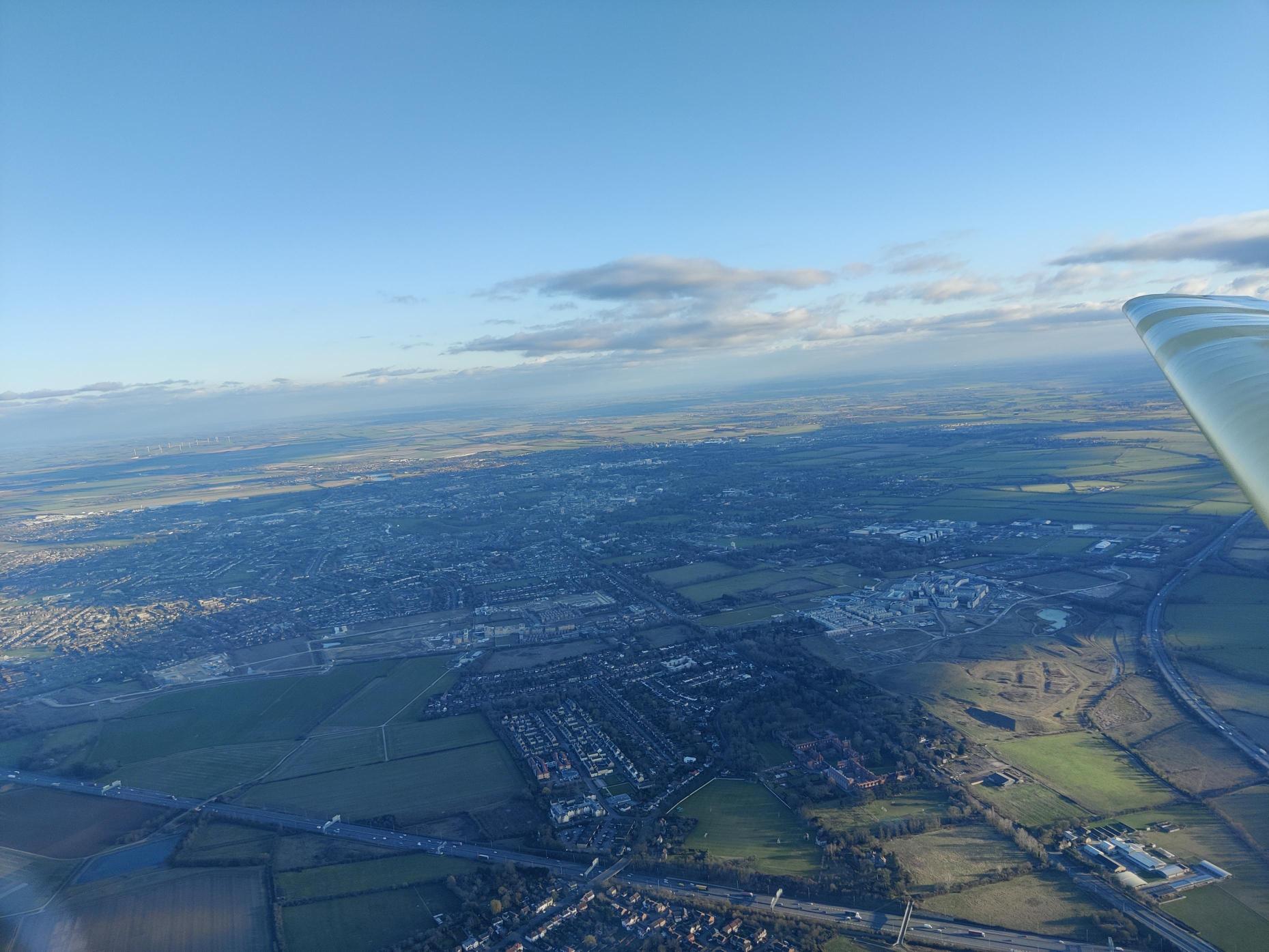 Furthermore, the motor glider is able to travel much further afield than a glider on non-soaring days. Our regular route involves an air tour out to Grafham water and St Neots before returning to Gransden Lodge, but there is scope for customisation if desired. One of the students I flew with lives in Toft which is a village between Cambridge and Gransden, and we were able to overfly the village to have a look at his family house and neighbourhood. In late afternoons when Cambridge radar gets less busy, I was also able to get ATZ transit clearance on a couple of occasions and I took my student over the city to play the game of ‘finding your college’. Both described the flight as fantastic afterwards.